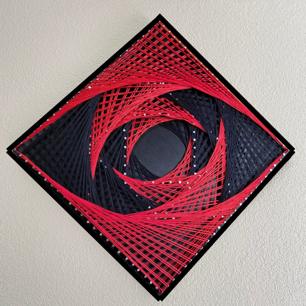 Gevlochten Passie, Roze/Paarse String-Art op een zwarte achtergrond